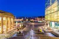 Königsbau, Museum of Art and New Palace op de Schlossplatz in Stuttgart in de avond.