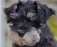 Koop de foto Schnauzer puppy close up kijkt omlaag van Jolanda de Jong-Jansen als print op canvas, aluminium dibond, (ingelijste) fotoprint, behang en ArtFrame. Voor jou op maat geprint in Fine-Art kwaliteit.