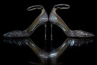 Deze glitter pumps met naaldhak zijn en spatten van de foto af. Stiletto shoes with a lot of silver and colour glitters. Reflection reflectie.