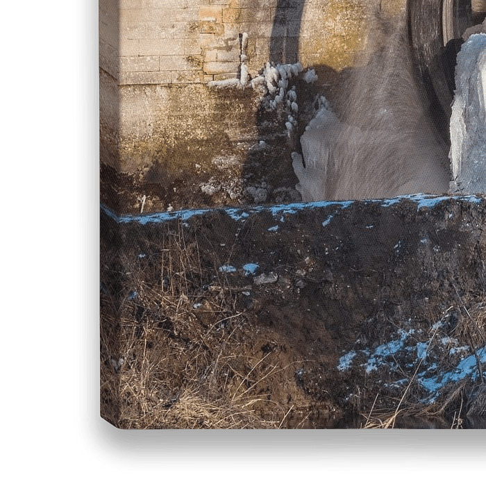 IJs op de raderen van de watermolen in Wijlre (Heuvelland, Limburg).
