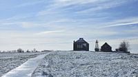 Ik heb deze foto gemaakt op de voormalige eiland Schokland in de Noordoostpolder, ik stond bij de plek waar vroeger de haven was. Het was de noordelijke gedeelte van deze voormalige eiland in de Zuiderzee. De avond voordat ik deze foto maakte had het gesneeuwd, er lag een dunne laagje sneeuw. Het achterste gebouw is van de lichtwachter/havenmeester en de voorste gebouwtje was voor de misthoorn, tussen in staat een vuurtoren van een metalen geraamte. Het zijn een van de weinige monumentale gebouwen in de Noordoostpolder. Links op de foto zie je een betonnen fietspad. Ondanks dat het mooi weer was toen ik deze foto maakte hing er sluierbewolking. Ik heb voor deze foto mijn camera op statief gezet en heb een polarisatiefilter gebruikt, de polarisatiefilter zorgt er niet alleen voor dat de lucht blauwer werd maar ook dat de natte fietspad minder licht weerkaatst. Ik heb ervoor gekozen om deze foto in 16:9 te croppen.