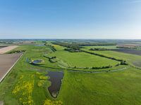 Luchtfoto van het voormalige eiland Schokland in de Noordoostpolder, Flevoland, Nederland. De bomen tonen de contouren van het voormalige eiland, dat hoog boven de rest van het land uitsteekt.