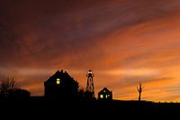 Wachthuisjes en vuurtoren in vroegere haven van Schokland