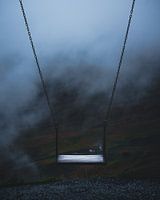 Een schommel op de rand van een afgrond, in het donker. Er zijn wolken aangezien het op 4000 meter op een berg is. Het is erg moody en geeft je een beetje een luguber gevoel. Het is in colombia in een nationaal park.