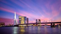 Deze kleurrijke zonsondergang boven Rotterdam, de Erasmusbrug en de Maas was het wachten meer dan waard. Doordat de zonsondergang in de winter vroeg is, staan de lichtjes in de vele kantoren aan.