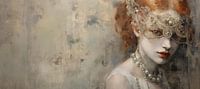 Schoonheid in Geheim | Portret Aardetinten - Dit intrigerende portret toont een ongrijpbare schoonheid gehuld in een sierlijk masker, dat de kijker uitnodigt tot speculatie over wat erachter schuilgaat. De subtiele aardetinten en textuurrijke achtergrond vormen een warme ambiance rond het onderwerp en benadrukken de intrigerende blik en…