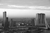 De Rotterdam, Erasmusbrug en Maaslandtoren samen in het swart en wit.