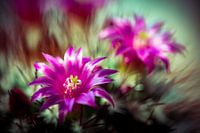 Schoonheid macro cactus met paarse bloemen en stekels met bokeh details en close-up