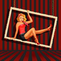 Sexy Pin Up Girl in een nostalgische foto frame in retro-stijl van de jaren 1950.