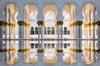 Schoonheid van symmetrie in Grote Moskee in Abu Dhabi