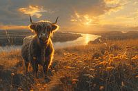 Met een warme zonsondergang op de achtergrond en een Schotse Highland koe als trots middelpunt, vangt dit idyllische natuurschilderij de essentie van landelijke schoonheid. De scène speelt zich af in een zee van heide, waarvan de paarse tinten het schilderij een rustgevende diepte geven. De gedetailleerde penseelvoering van de kunstenaar benadrukt de zachte vacht van het vee en geeft de compositie een bijna tastbare textuur. Dit kunstwerk belichaamt de ongerepte elegantie van de Schotse wildernis en is het perfecte stuk voor iedereen die verlangt naar een vleugje natuur in zijn woonruimte.