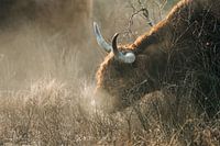 Deze Schotse Hooglander in tegenlicht gefotografeerd