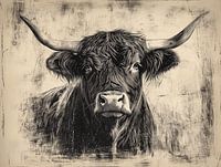 Deze ets van een Schotse Hooglander straalt kracht en elegantie uit, met een verfijnde en gedetailleerde weergave van het imposante dier. De ruwe textuur en contrastrijke lijnen benadrukken de serene en kalme blik van de hooglander, waardoor het een ideaal kunstwerk is voor liefhebbers van natuur en dierenkunst. Dit unieke kunstwerk is…