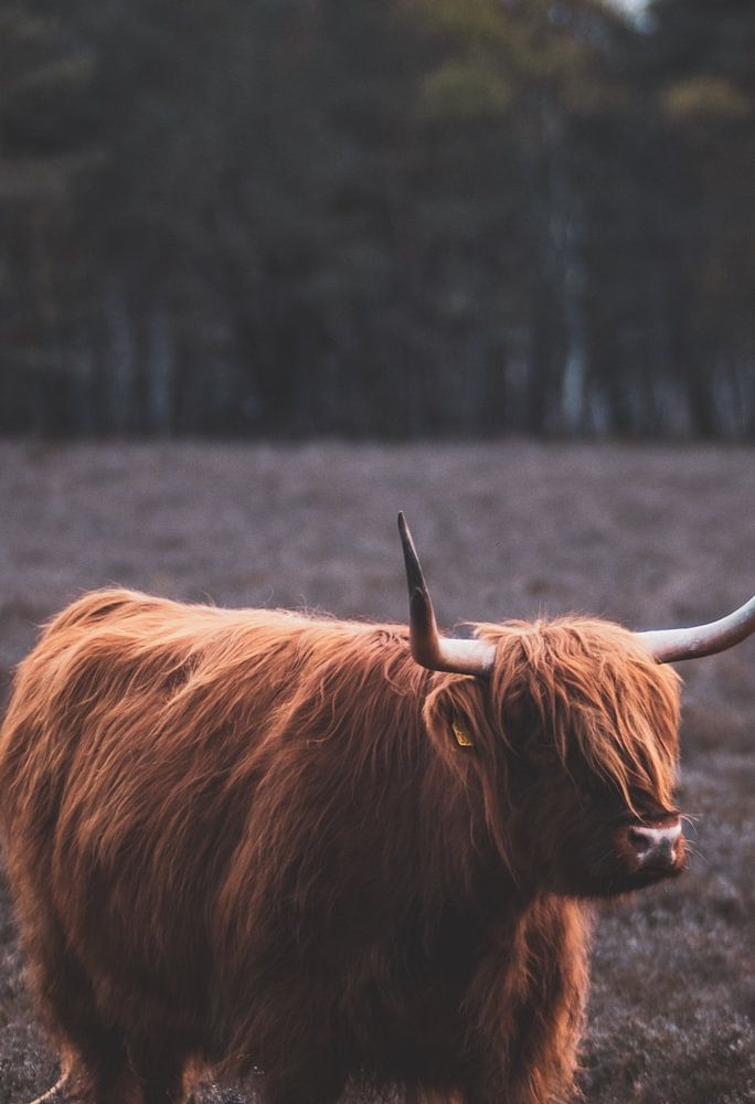 Bos (vegetatie), Dierenrijk, Schotse hooglander (rund), Vacht, Nederland, Portret, dierenportret, Weiland, Bomen, Grote grazers, wezepsche_heide, Natuurbeheer