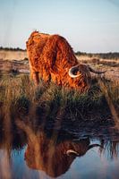Deze Schotse Hooglander had niet op een betere plek kunnen staan voor deze foto. Hij was ver van huis, maar hij voelde zich meer dan comfortabel! Zo blij dat hij mij rustig alle tijd gaf om hem vast te leggen. Ongelofelijk blij met deze foto, met name door de reflectie. Wat een prachtige beesten met machtige hoorns en een rijk oranje vacht.