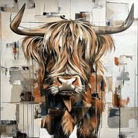 Creatieve Schotse Hooglander in een abstracte stijl. Neutrale tinten, dus past overal.