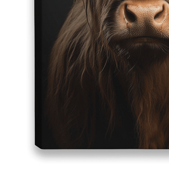 Betreed de mysterieuze wereld van de Schotse Hooglander met deze intrigerende close-up foto. Op een diepzwarte achtergrond komt de kracht en schoonheid van dit majestueuze dier volledig tot zijn recht. Je kunt elk detail van de weelderige vacht en imposante hoorns bewonderen terwijl je je verliest in de betoverende ogen van de Hooglander. Deze foto straalt een tijdloze elegantie en een vleugje intrige uit. Het is een meesterwerk dat een statement zal maken in elk interieur. Breng de rustieke charme van de Schotse Hooglander in huis met deze adembenemende close-up foto.