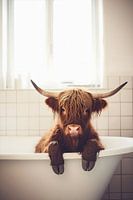 Een aaibare Schotse hooglander neemt een onverwachts, ontspannend bad en laat zien dat zelfs dieren behoefte hebben aan een beetje verwennerij.