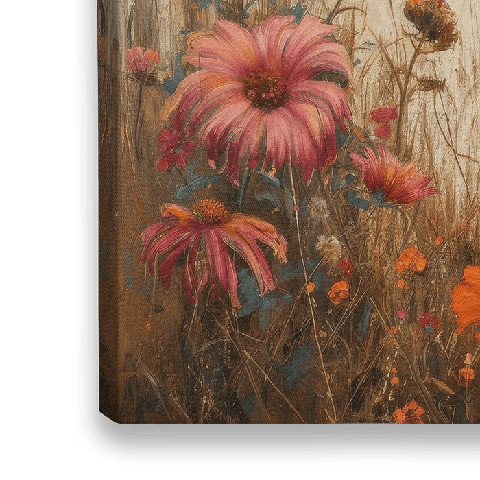 Dit schilderachtige portret toont een majestueuze Schotse Hooglander die zich een weg baant door een weelderige bloemenzee. De ruige, lange vacht van het dier vormt een prachtig contrast met de levendige bloemen in tinten van oranje, roze en rood die om hem heen bloeien. De intense blik van de Hooglander, gecombineerd met de sierlijke bloemen, creëert een harmonieus beeld van kracht en tederheid. Dit kunstwerk vangt de essentie van landelijke charme en natuurlijke pracht, perfect voor liefhebbers van dieren en rustieke schoonheid in het interieur.