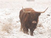 Deze mooie bruine Schotse Hooglander kwam naar mij toe lopen. De foto is gemaakt in Januari 2026 in Doldersum Drenthe Nederland. Een mooi winters plaatje.