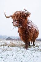 Die ene keer dat er dan wat sneeuw in Nederland valt, dan zijn de Schotse Hooglanders wel een heel fotogeniek en dankbaar onderwerp voor de fotografie. Deze bruin rode dame was inmiddels zo op haar gemak, dat ik dat ik rustig een groothoek opname van haar kon maken in het besneeuwde Nederlandse landschap.