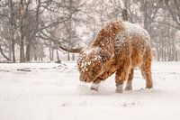 Schotse Hooglander in de sneeuw. van Albert Beukhof
