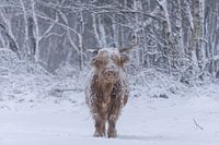 Een Schotse Hooglander in de sneeuw, op een koude winterse dag, in Huis ter Heide bij Tilburg. Het natuurgebied wordt beheerd door Natuurmonumenten.