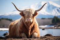 Dit tafereel, waar Oost en West elkaar ontmoeten, brengt een gevoel van vrede en verwondering teweeg. De Schotse Hooglander in het Japanse landschap is een poëtische herinnering aan de schoonheid van diversiteit en eenheid in de wereld om ons heen.
