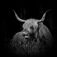 Deze foto heet : Schotse Hooglander in Rust 1. Zwart-wit.