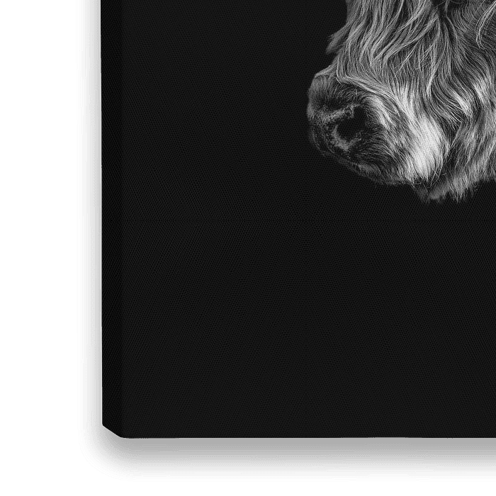 Koop dit schotse hooglander kunstwerk Schotse Hooglander in zwart wit. van Justin Sinner Photography ( Fotograaf op Texel) op canvas, aluminium dibond, (ingelijste) fotoprint, behang en ArtFrame, op maat geprint in Fine-Art kwaliteit.