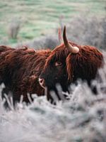 Een Schotse hooglander in de sneeuw, Schotsman, Zeeland.