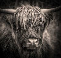 Portret van een schotse hooglander in zwart-wit