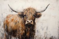 Een digitaal geschilderd portret van een Schotse Hooglander. Het kleurpalet en de rauwe stijl heeft een grungy impressionistische touch. Het werk geeft een dromerige en klassieke uitstraling aan uw interieur!
