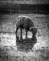 Sterke kleine koe met formidabele horens.