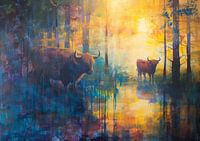 Schotse Hooglanders - Schotse Hooglander koeienschilderij schilderij koe Schotse Hooglander