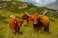 Schotse hoogland runderen met hun kleine kalfje