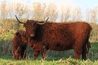 Smelt moment wanneer je een schotse hooglander tegen komt met een kalf.
