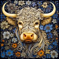 De print heeft een grafische uitstraling.Een prachtige bloemrijk dierenportret !