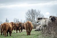 Schotse hooglanders in het duingebied Lentevreugd bij berkheide tussen Wassenaar en Katwijk aan Zee. Het gebied wordt beheert door Dunea en Staasbosbeheer. De kudde koeien groeit gestaag en het is ieder jaar weer geweldig om de kalfjes te zien komen en te zien opgroeien. Schotse hooglanders in het duingebied berkheide tussen Wassenaar en Katwijk aan Zee. Het gebied wordt beheert door Dunea en Staasbosbeheer. De Schotse hooglander (Schots-Gaelisch: Bò Ghàidhealach; Schots: Heilan coo), ook wel Highland Cow genoemd, is een meestal roodbruin runderras dat oorspronkelijk uit Schotland komt. Ze hebben lang haar en lange horens.