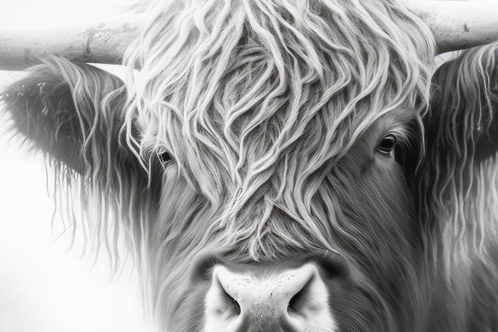 Breng een vleugje Schotse wildernis in je huis met ons prachtige digitale schilderij van een Schotse hooglander in zwart-wit. Het contrastrijke zwart-witte ontwerp legt de nadruk op de majestueuze uitstraling van de hooglander en zorgt voor een tijdloze en eigentijdse uitstraling aan je muur. Het schilderij is gemaakt met oog voor detail en geeft de hooglander op een indrukwekkende manier weer. Bestel vandaag nog en haal dit unieke kunstwerk in huis als een blijvende herinnering aan de ruige schoonheid van de Schotse Hooglanden.