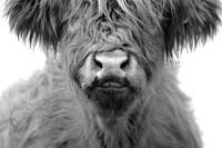 Net een hondje, deze Schotse hooglander. Een prachtig kalfje dat nieuwsgierig in de lens kijkt. Met zijn wilde haren die over de ogen vallen, lijkt het echt een grappig beestje. De uitvoering in het zwart wit maakt deze foto tot een tijdloos beeld, die bij iedereen goed aan de wand zal staan. Deze foto is ook in een sepia uitvoering verkrijgbaar.