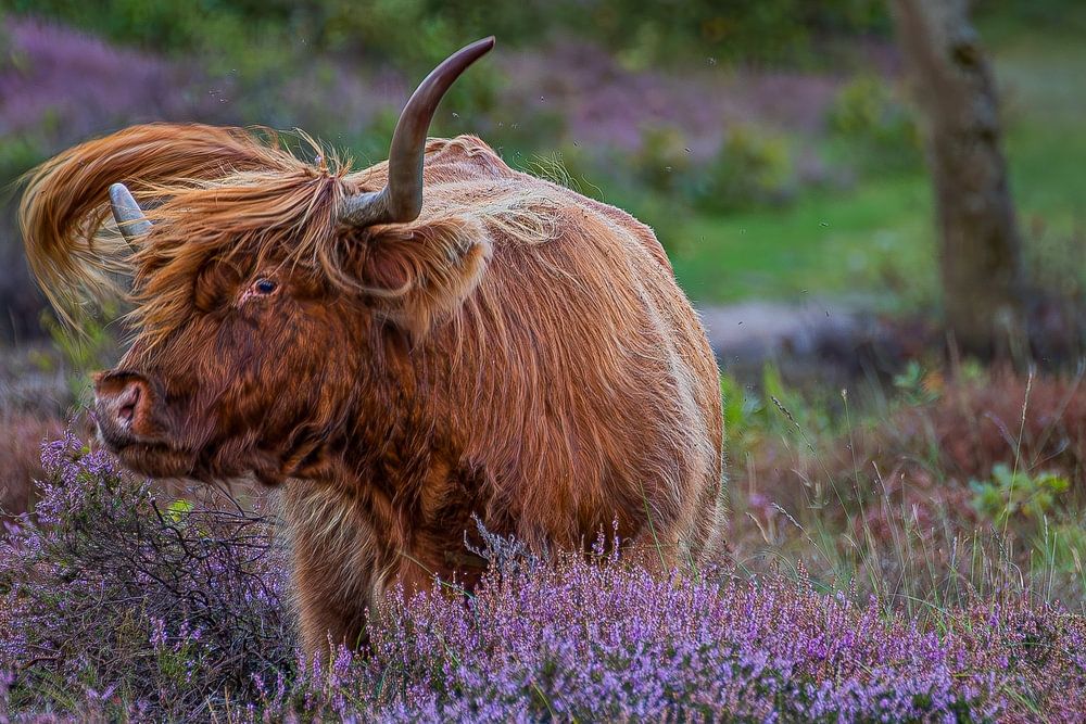 Schotse hooglander mooi in de heide. Hier ging ik om uit en dat het nog lukte was mooi. Gelukkig lieten ze zich af en toe horen. Uiteindelijk door mijn telelens zag ik ze en kon er naar toe lopen. Wel op gepaste afstand blijven.