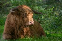 Schotse hooglander rustend in het gras van John van de Gazelle fotografie