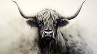 Dit semi-abstracte koeienportret van een Schotse hooglanders wordt gekenmerkt door een evenwichtige combinatie van abstractie en herkenbaarheid, zwart-wit contrasten en subtiele beige tinten. Een panoramische compositie die de schoonheid van dit imposante dier benadrukt.