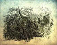 Een foto van een Schotse hooglander, en digitaal bewerkte.