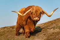 Een schotse hooglander in het duinlandschap. Prachtige dieren zijn het. Ze verzorgen de begrazing van het duingebied en kunnen er vrij rondlopen.