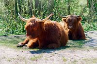 Schotse-hooglanders de overbekende grootte grazers die een handje helpen bij het natuurbehoud. deze fraaie roodbruine herkauwers zijn tegenwoordig in grootte delen van Europa te vinden . Imposant zijn vooral de hoorns die bij elk dier anders zijn.