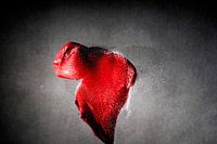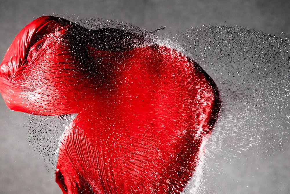Snapshot van een rode hartvormige ballon die door een patroon is gebarsten