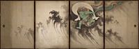 Schuifdeur met ontwerp van de God van de Wind en de God van de Donder, Suzuki Kiitsu