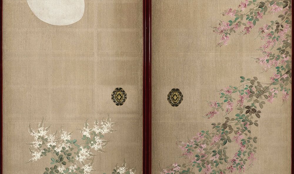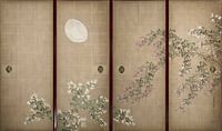 Schuifdeur met ontwerp van maan met klavertjes, Suzuki Kiitsu